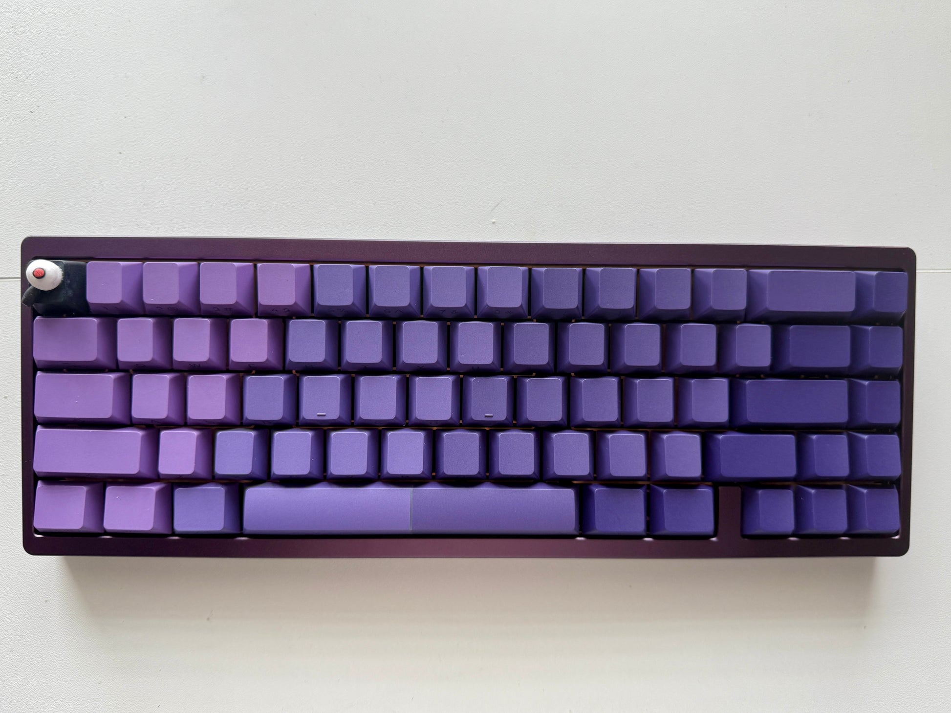 keyboard: Weikav Lucky 65 anodized aluminum keyboard, purple